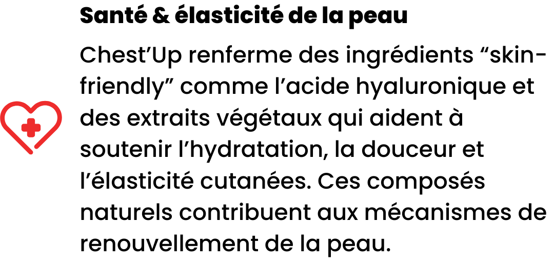 Oui. Chest'Up est formulé avec des ingrédients naturels, doux pour la peau, et ne nécessite aucune procédure invasive ni produits agressifs.